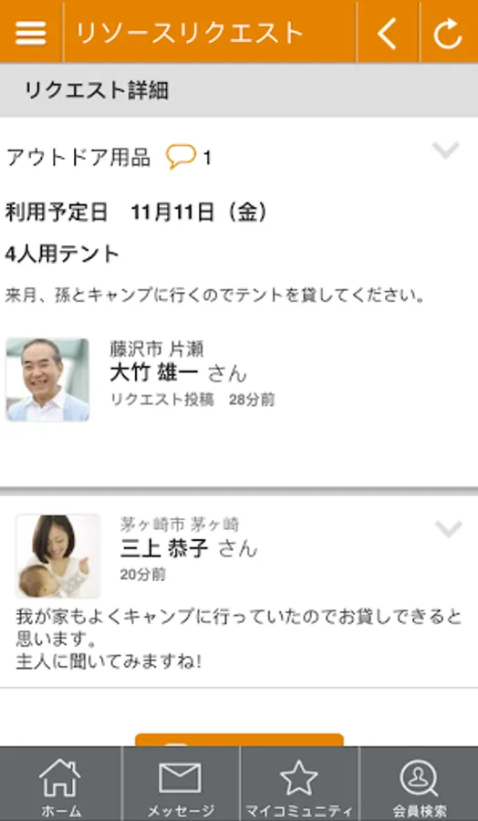 モノやスキルなどで困ったときに、コミュニティに助けを呼びかけることができます。
