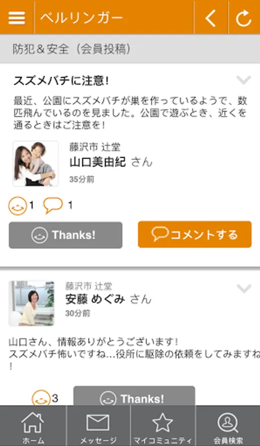 地域のお役立ち情報をリアルタイムに伝え合うことができます。