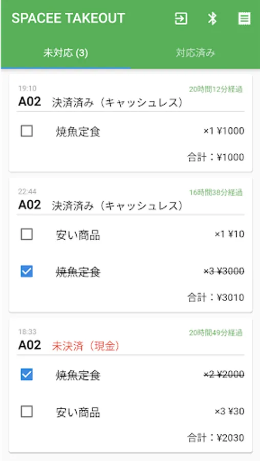-Order management function on your Android device. For each order, you can centrally manage orders that have not been served, orders that have been served but have not been accounted for, and orders that have been accounted for.