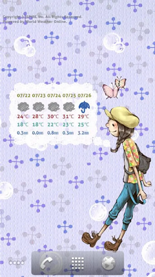 I will change the character according to season and temperature. When you tap the character, the current weather information and a five-day "weather forecast" is displayed.