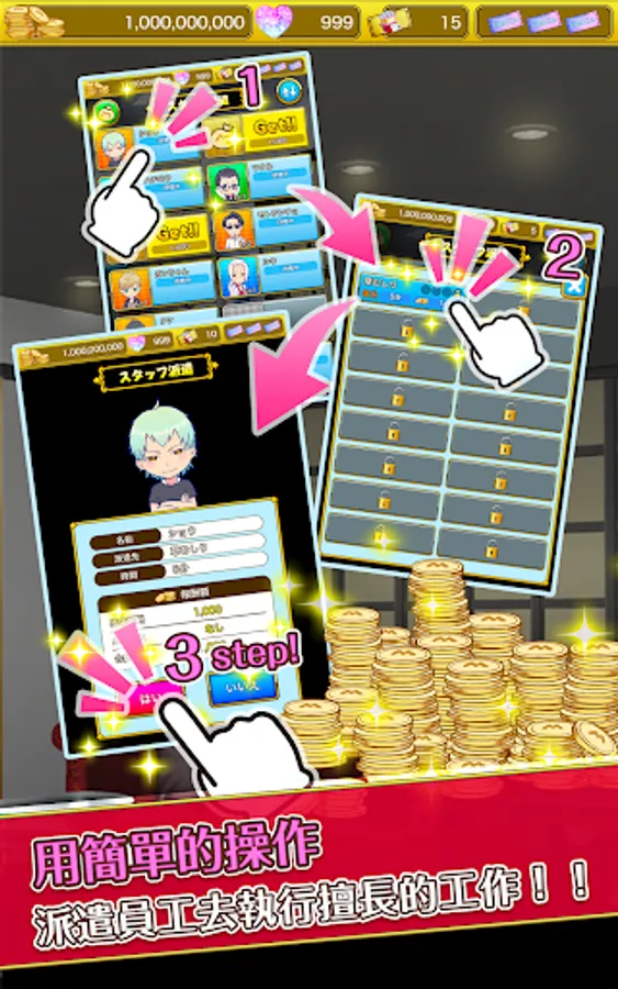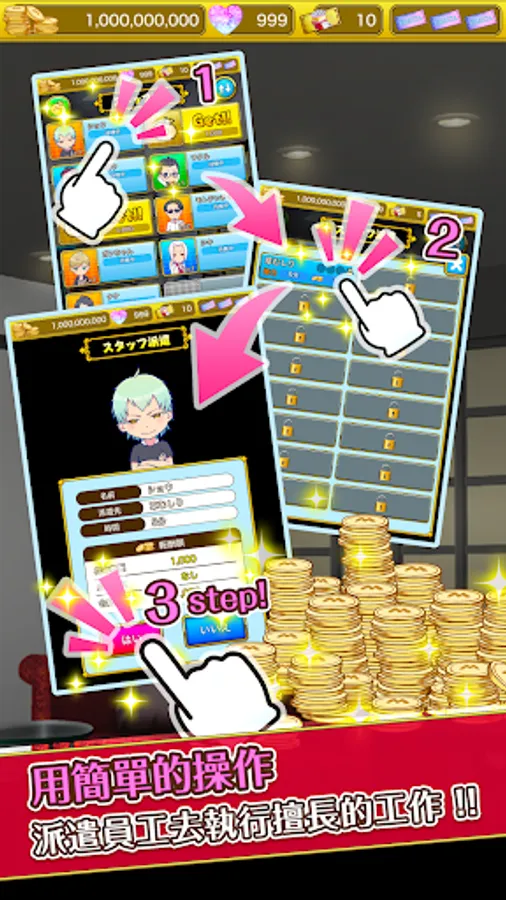 只要招募培養員工,輕鬆放置就可以簡單賺錢。