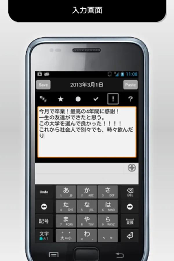 The "fast sailing Notes Sync! (Sink)", the capability to save the data to the cloud server on the net is attached. When you use this feature, data updates and notes that you create is automatically saved in the cloud, you do not lose a note of unexpected failure data even if it occurs. Also, when you change the model, you can use it to continue the memo data.