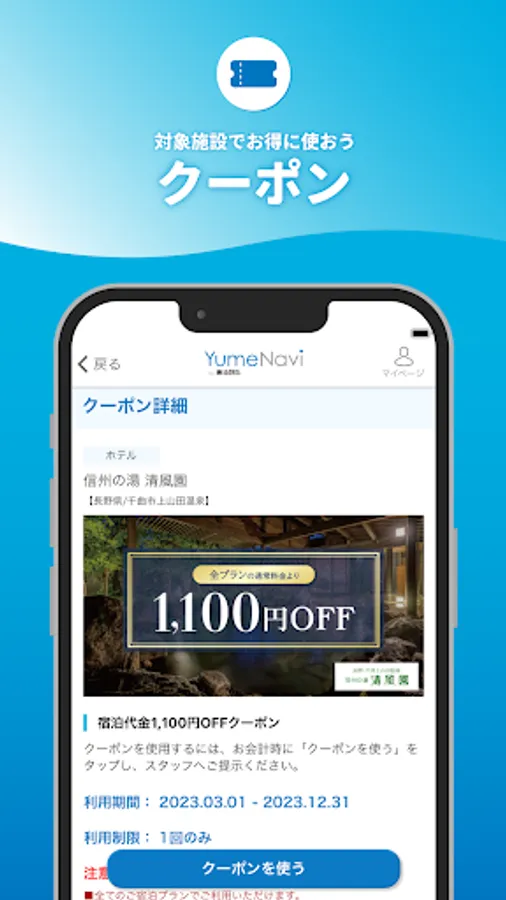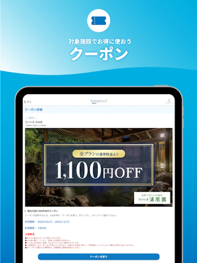 ・For details on how to use points, please check each facility page on the Yumenavi official website.