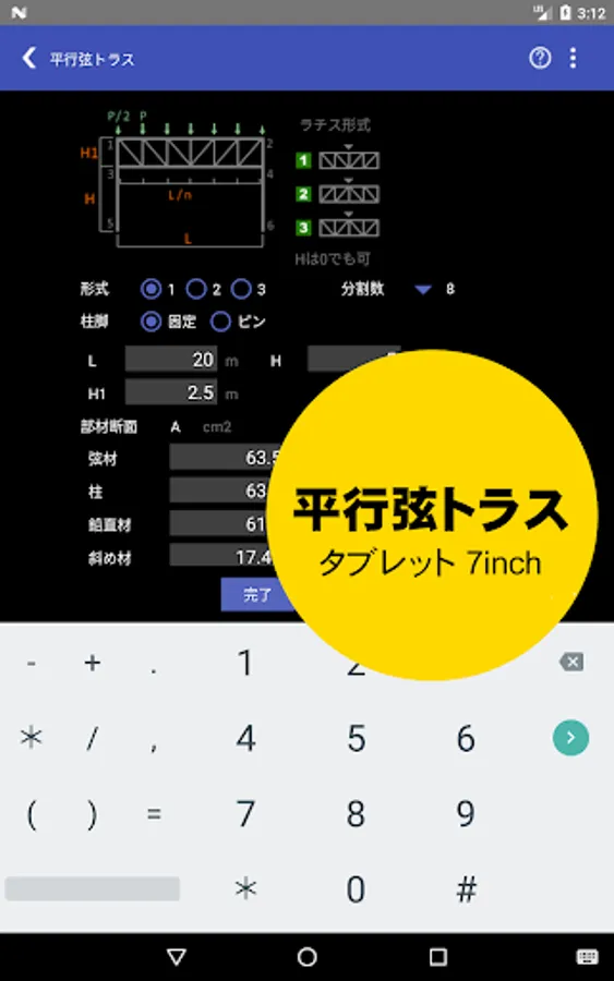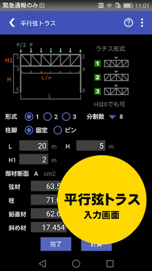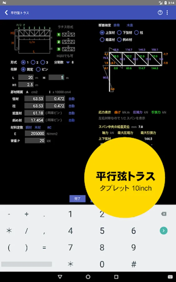 汎用の応力解析と異なり、骨組形式があらかじめ定められている分、最小限の入力ですばやく解を得ることができます。