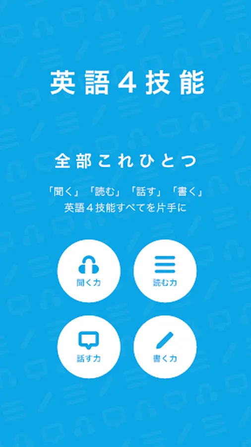 スタディサプリENGLISHは、外部英語検定試験でのスコアアップを目指す人向けの、「読む」「聞く」「話す」「書く」の英語の4つの技能を学習できることができるサービスです。