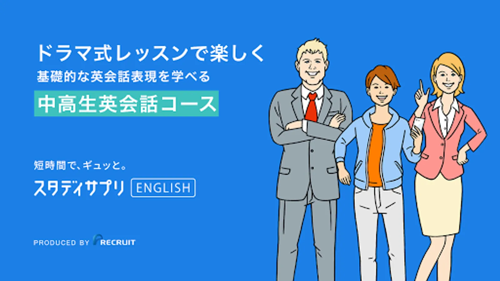スタディサプリENGLISH 中高生英会話コースは、ドラマ式レッスンで楽しみながら、基礎的な英会話表現をトレーニングできるコースです。