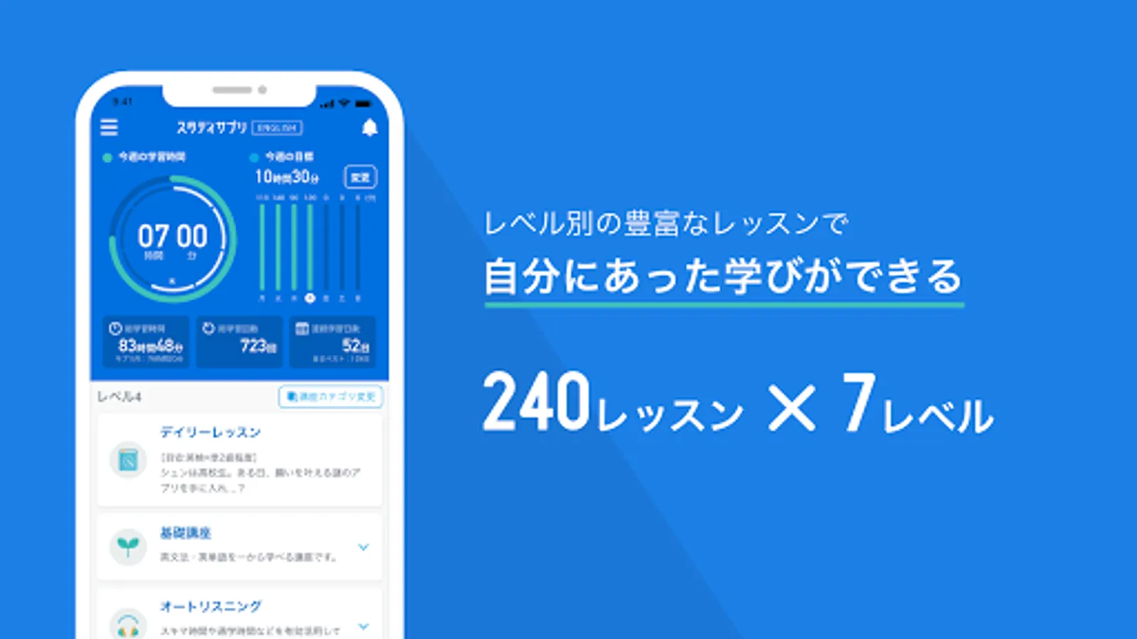 各レベル240レッスン×7レベル分が用意されており、生徒の英語力の違いに応じた、個別最適な学習を実現できます。(レベルは英検®5級相当から、英検®準1級相当まで幅広くご用意。)