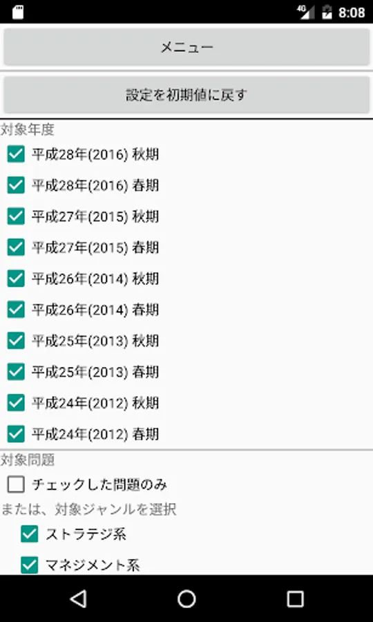 現在は、平成24年から平成29年春期までの問題を収録しています。