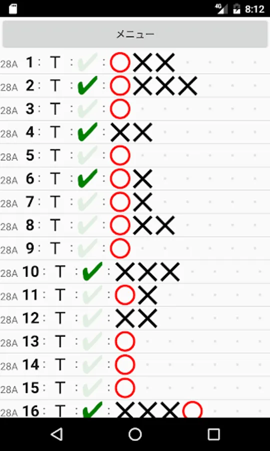 問題一覧には、採点の履歴が表示されるので、何度も間違えた問題を見つけて、重点的に勉強することもできます。