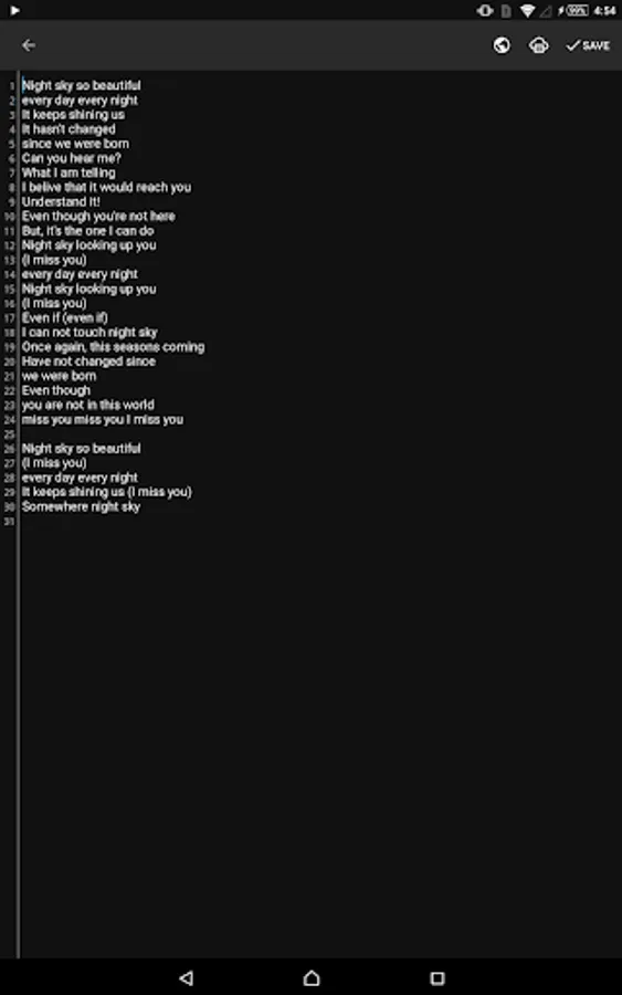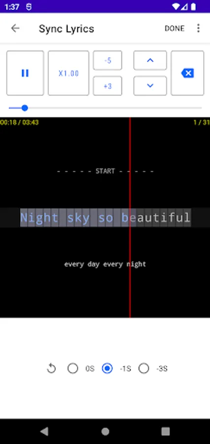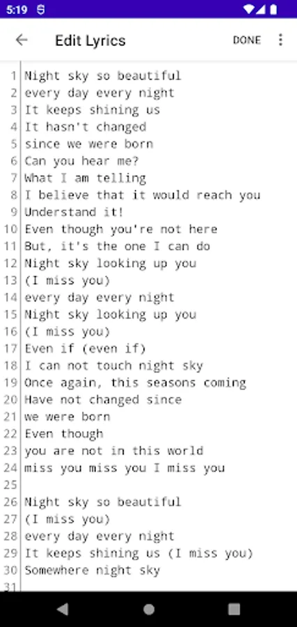 Full of functions will help you to make lyrics easily, such as rewinding, speed control, a skip of +-,preview,and more.