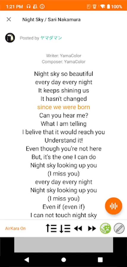 - When you tap a character of lyrics, lyrics are displayed synchronously from the tapped place. (AirKara function) (*5)