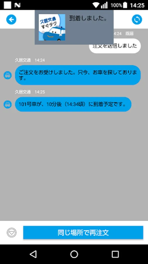 5. We will notify you of the estimated arrival time of the taxi by push notification. (Even if you are looking at another app, you will receive a push notification, so you can rest assured)