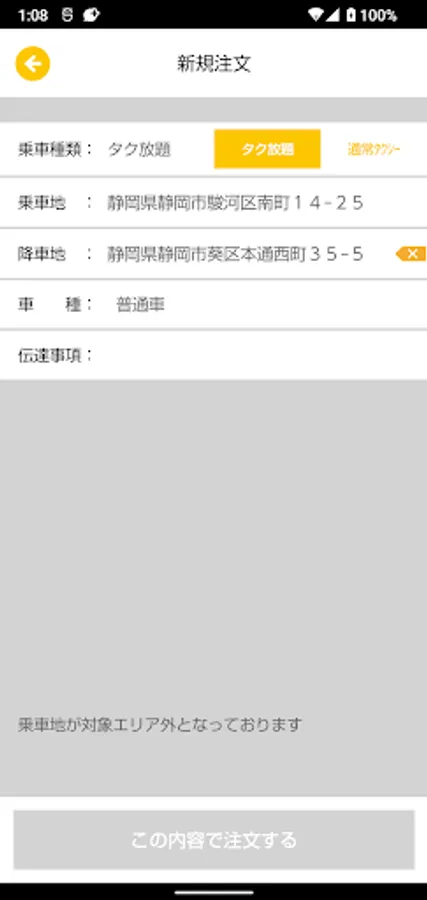 Please note that we may not be able to arrange a car depending on the weather, road conditions, and the circumstances of the taxi company.