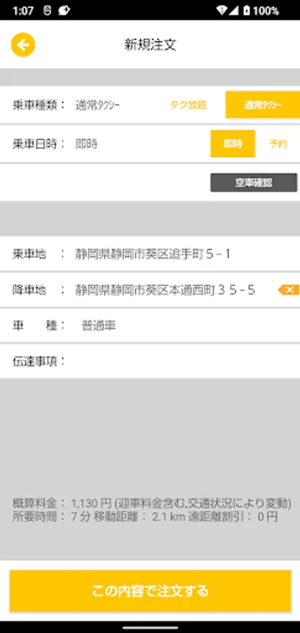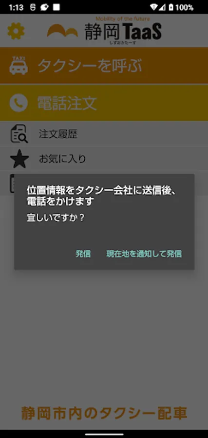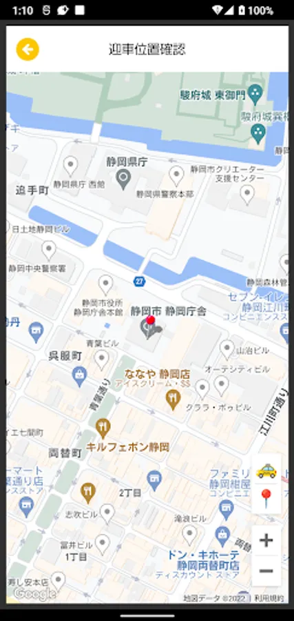 "Taku Call" is an intuitive operation and GPS function unique to smartphones, and you can easily call a taxi running near a place specified by the customer from among the taxis of multiple taxi companies running in Shizuoka city. It is an application.