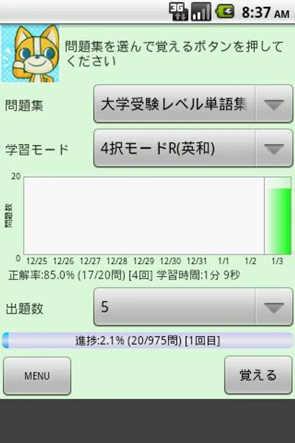 This is the smartphone (Android) version of the classic free software for Windows "English Word Learning Software P-Study System (PSS)".