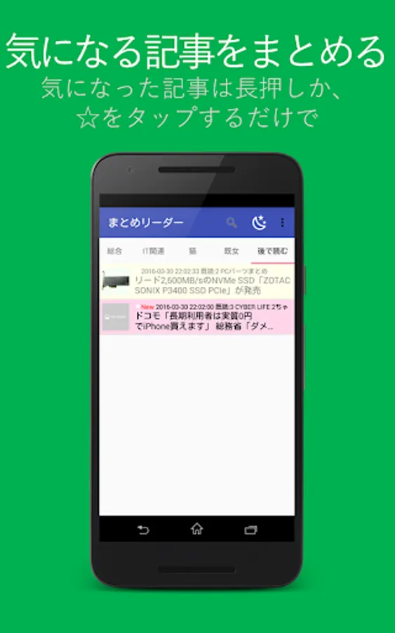 4. To read later (bookmark), simply press and hold on the article list or tap the star mark on the article.