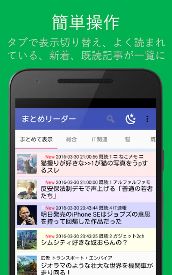 A free app that allows you to read the latest contents of the 2ch summary site at high speed with easy operation, even if you are out of service area or offline on the subway, etc., with advance caching.