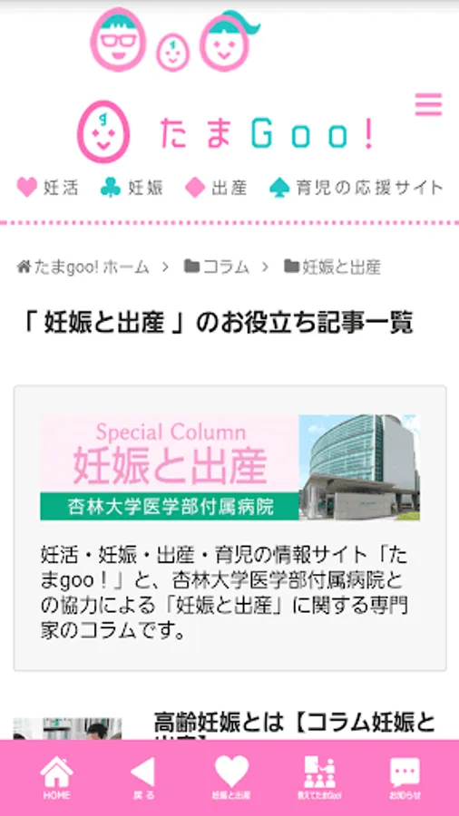 妊活・妊娠・出産を迎える女性、育児に向き合う女性を応援するメディア 『たまGoo』