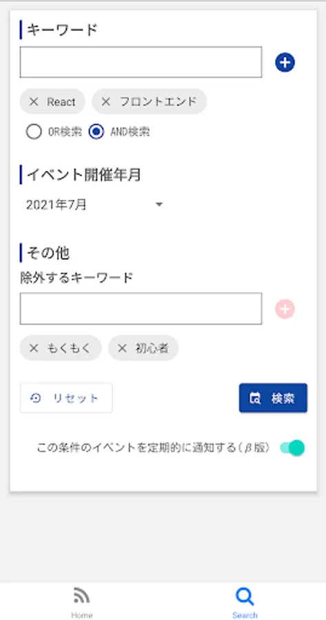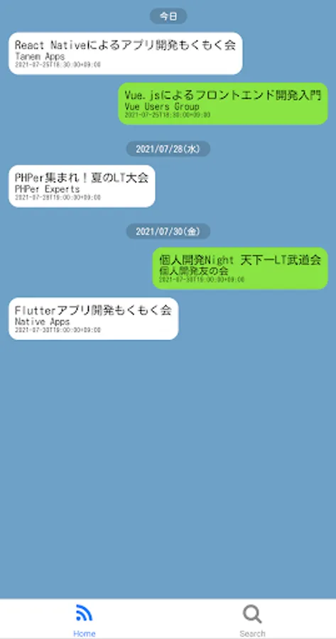 You can search for events such as study sessions, LT meetings, mokumoku meetings, and Meetups.