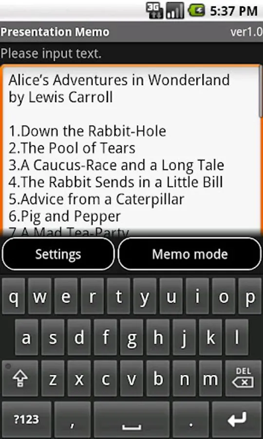 This application displays an elapsed time (like stopwatch) and the memo which you registered beforehand.