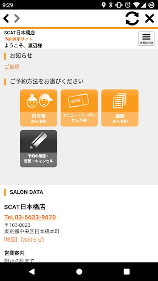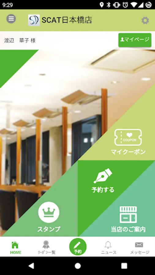 From My page, you can check the reservation status. Visit and confirmation of history and point, you can see a photo that was taken at the shop. Also you can receive announcements of campaigns and the like from the store.