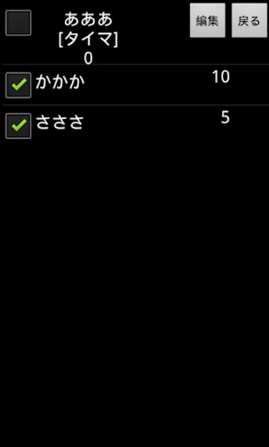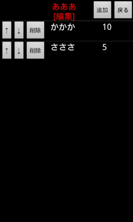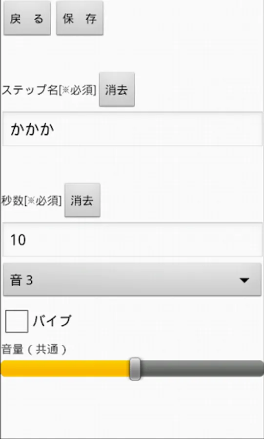 • Set the sound by adding step (rows), to play when the measured number of seconds the step name, the number of seconds is 0, the volume and ON / OFF of the Vibe function in timer content editing screen.