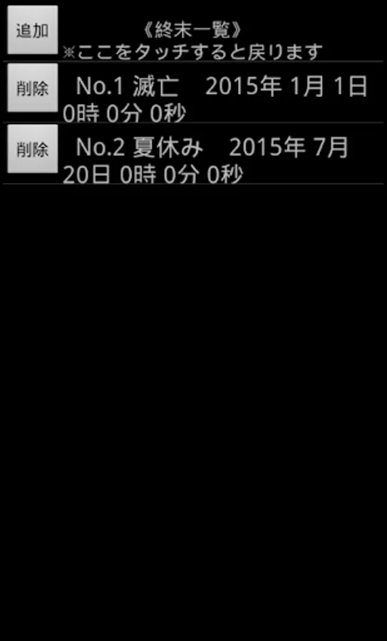 • After setting the end name and end date and time, the data when you touch the save button to return to the list screen is saved.
