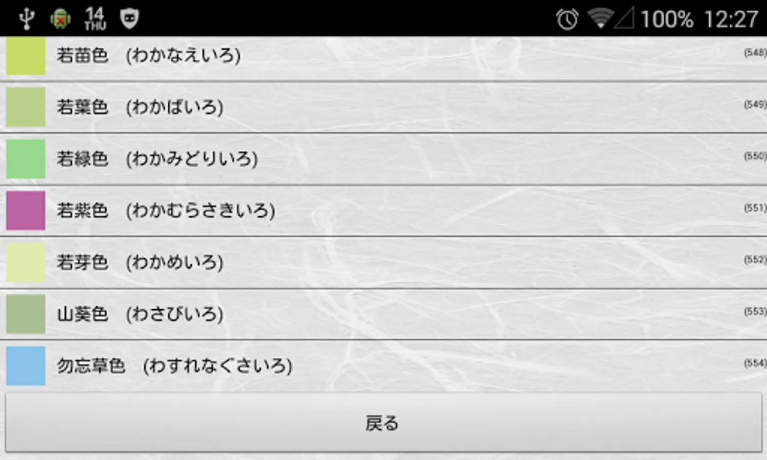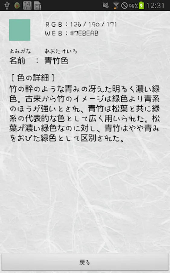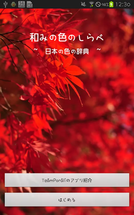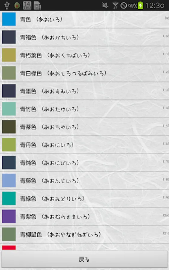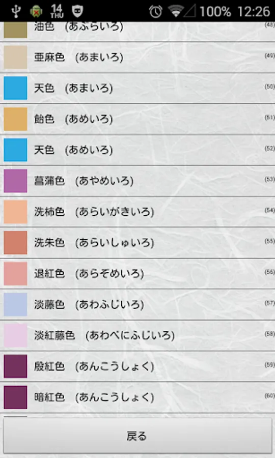 The traditional colors are organized as a color list app along with their origins.