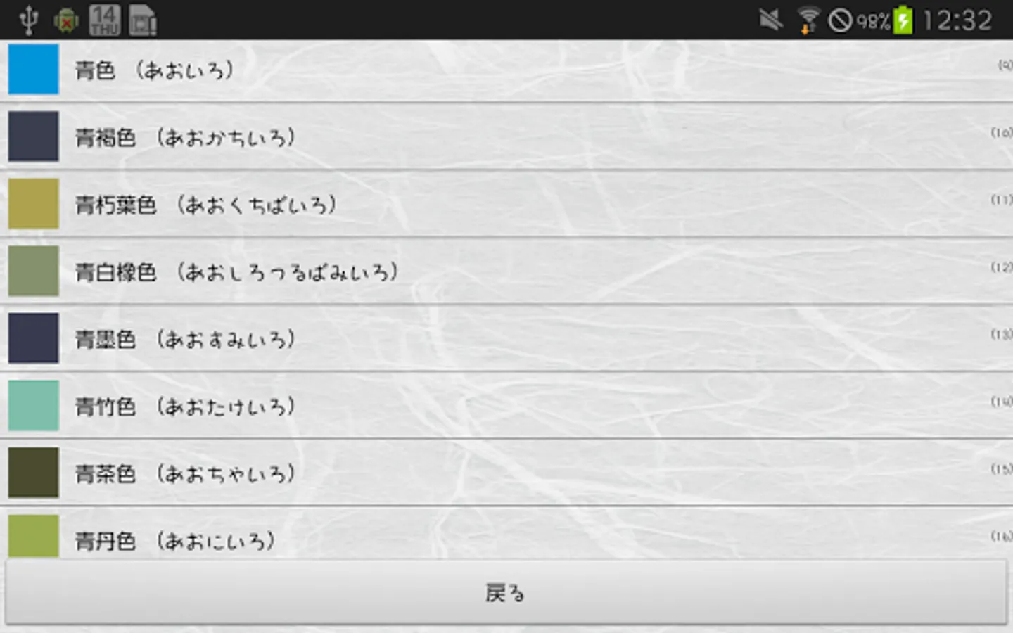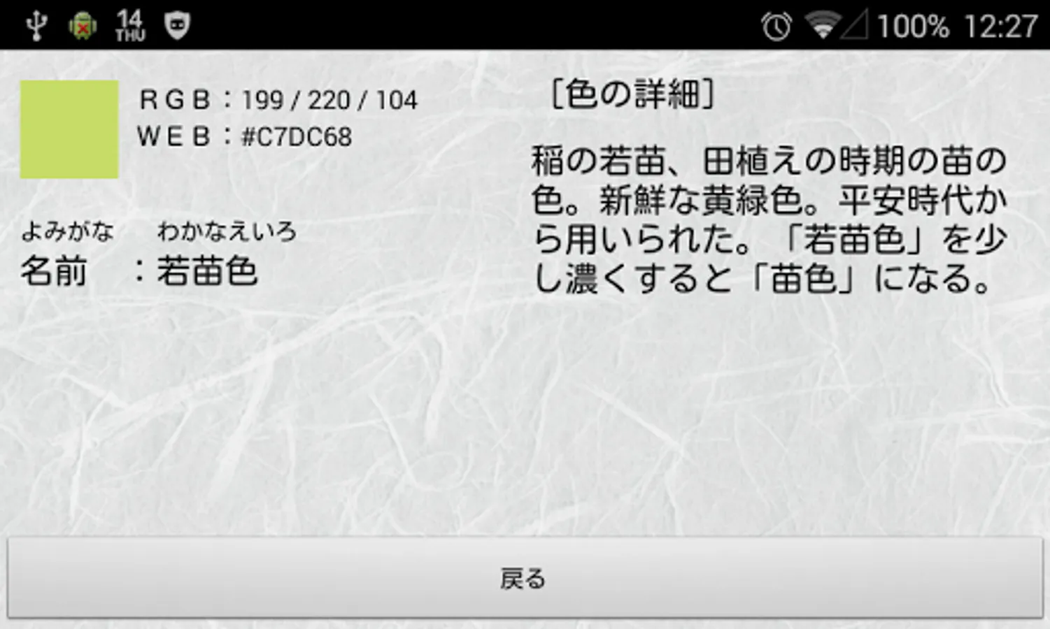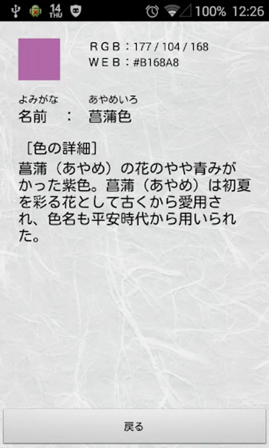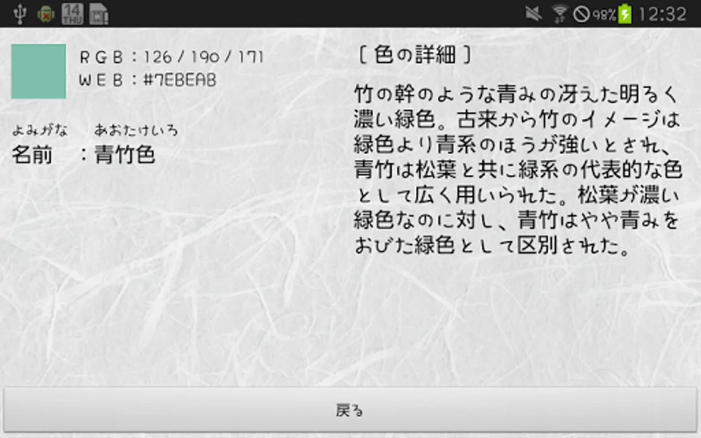 The traditional colors are organized as a color list app along with their origins.