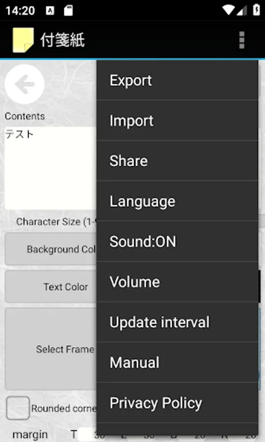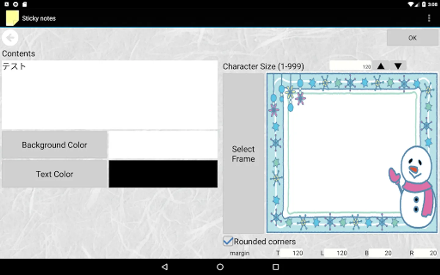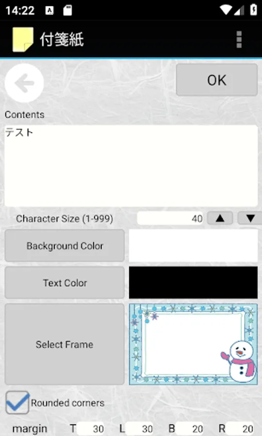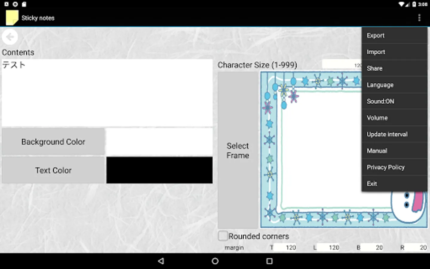 - Touching attached sticky notes makes the settings screen appear. Here you can freely enter text, or select a color or frame.