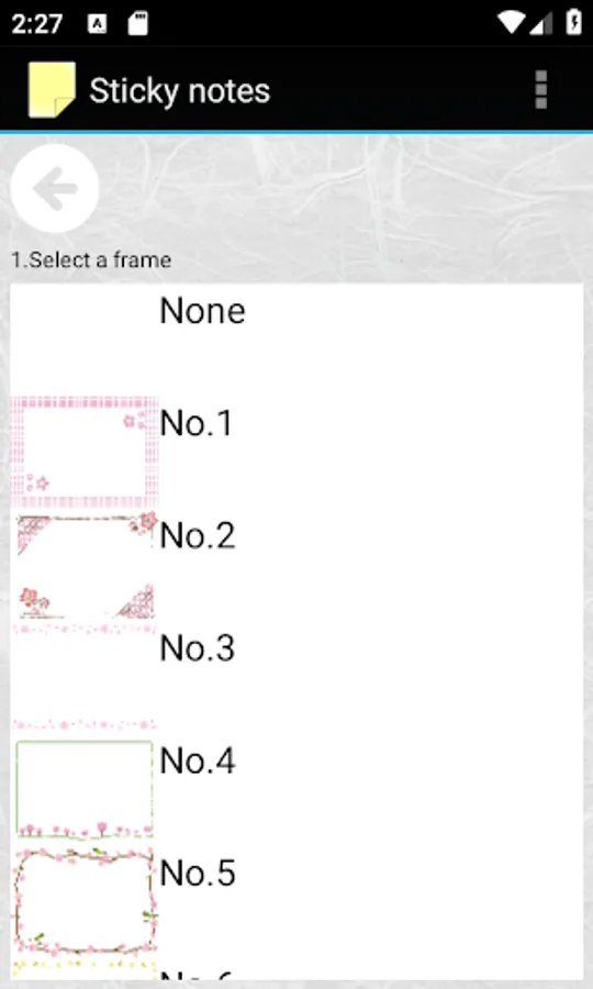 No advertisements or unwanted extras. No alarm function, image pasting or audio input. Just simple text input and color selection functions, and a bunch of cute framed sticky notes you can use for free.