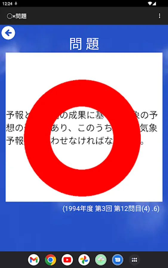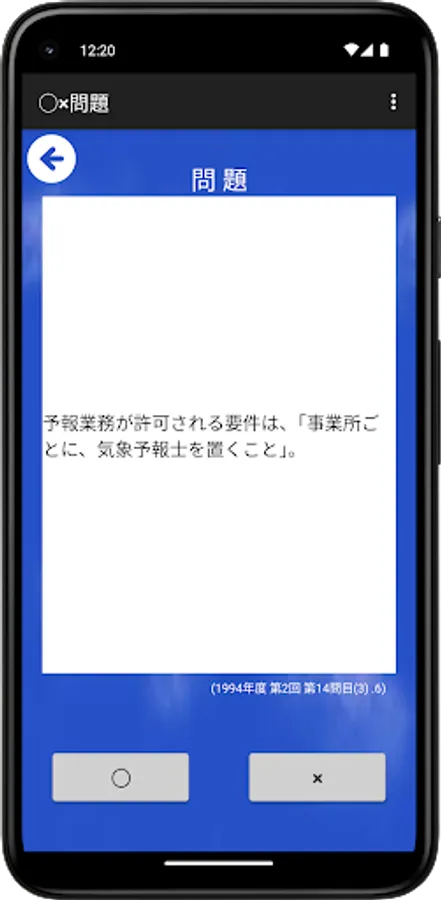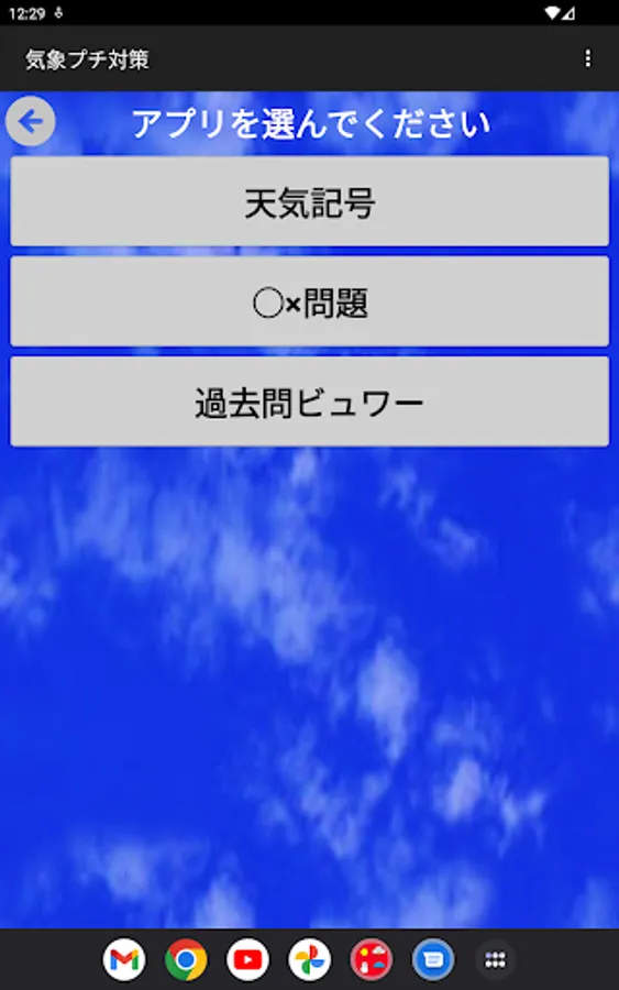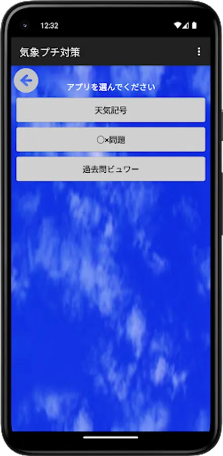 This app is a collection of all weather forecaster exam petit measures applications such as "weather symbol", "○× problem", "past question viewer", etc. that are individually provided into one application.