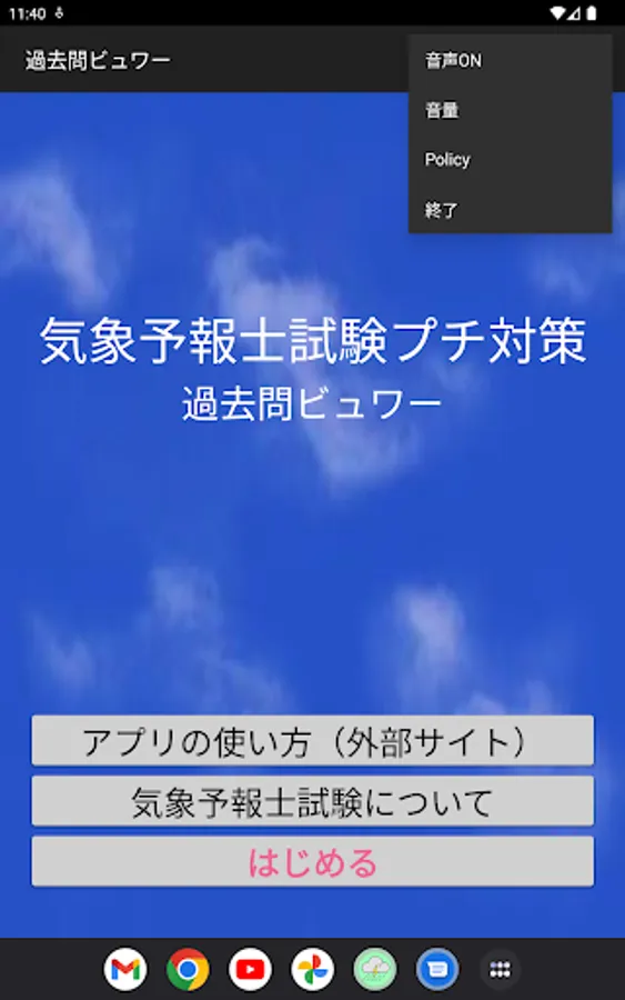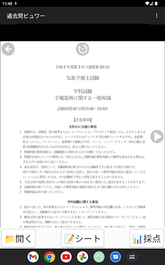 This is a "past question" that allows you to check the exam format like a mock exam using the past exam questions of "general knowledge of forecast work" and "specialized knowledge of forecast work" of the weather forecaster exam It's a viewer.