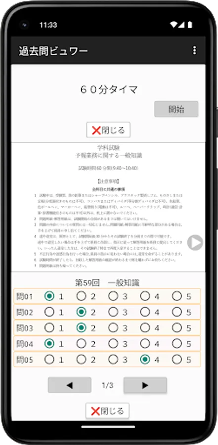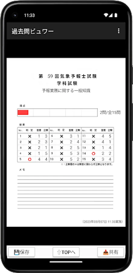 I think that you are checking your ability using past exam questions just before the exam, but this is an application created so that you can do that work using a smartphone or tablet terminal. If you prepare exam questions in PDF format on your smartphone or tablet device, you can check it like an exam.