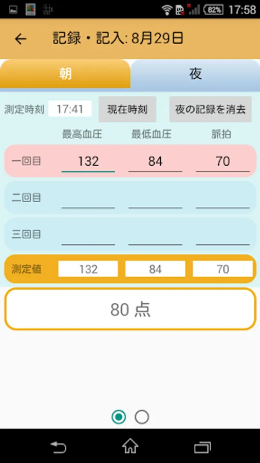 ・朝夜の血圧を記録し、それぞれ3回の平均値を自動で算出
