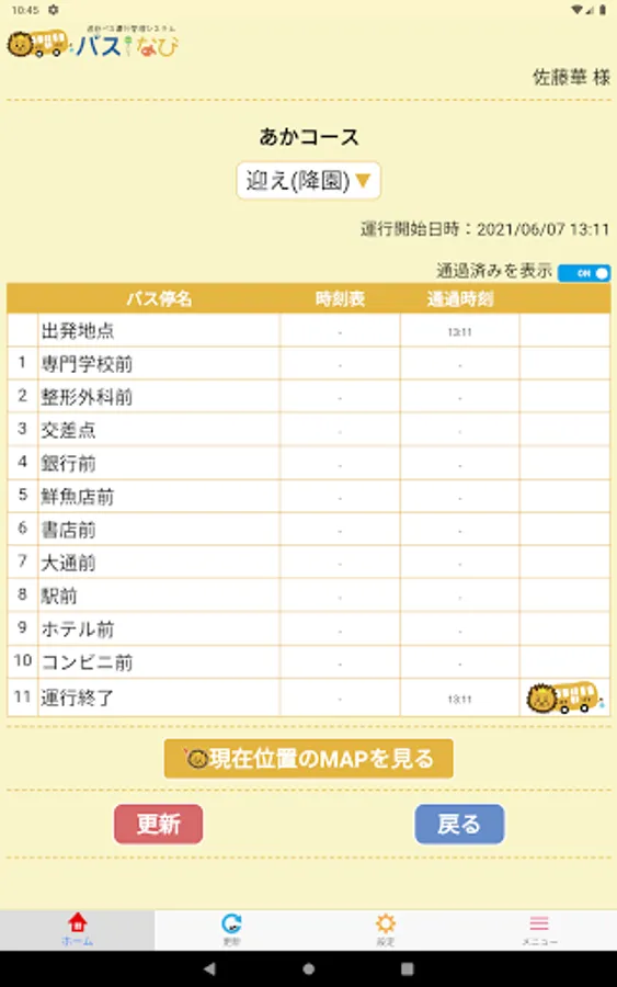 You can see where the bus is and what bus stops you passed through on My Page