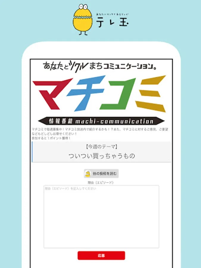 If you download the TV Saitama app, you can participate in TV Saitama programs only with the app! Join the program more and more with the app and collect points! !! Your answer may be reflected on TV ...? !!