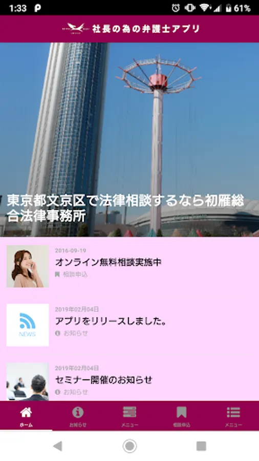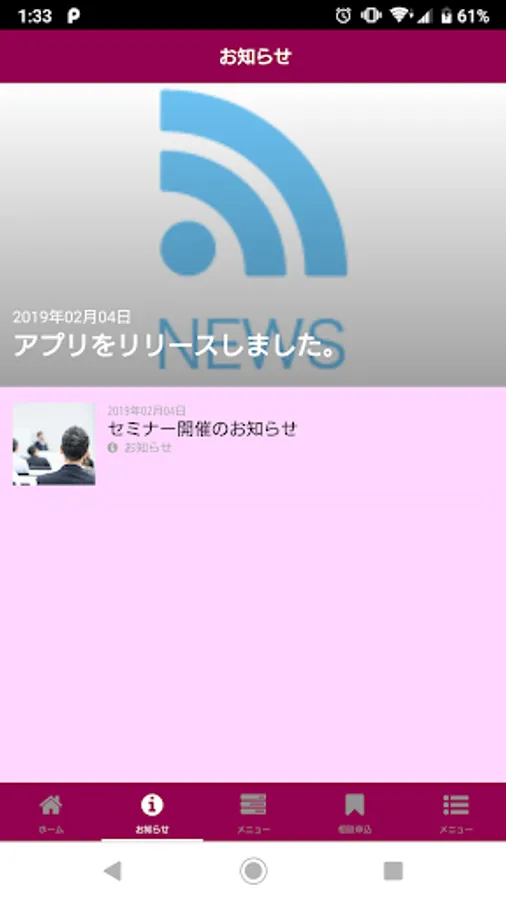 ■プッシュ通知でセミナーなどの情報がリアルタイムに届きます。