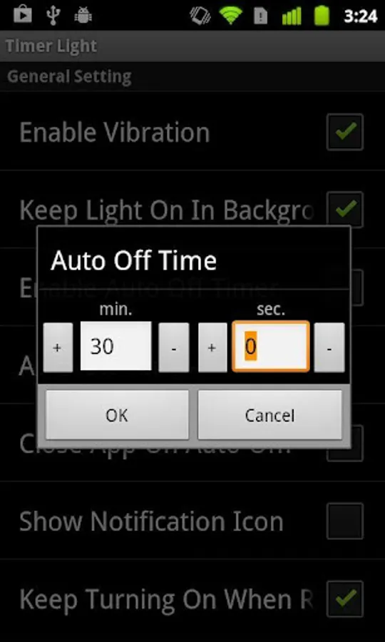 This app has a timer function. When setted time passed the light will be turning off and also app will be finished automatically if you wish.