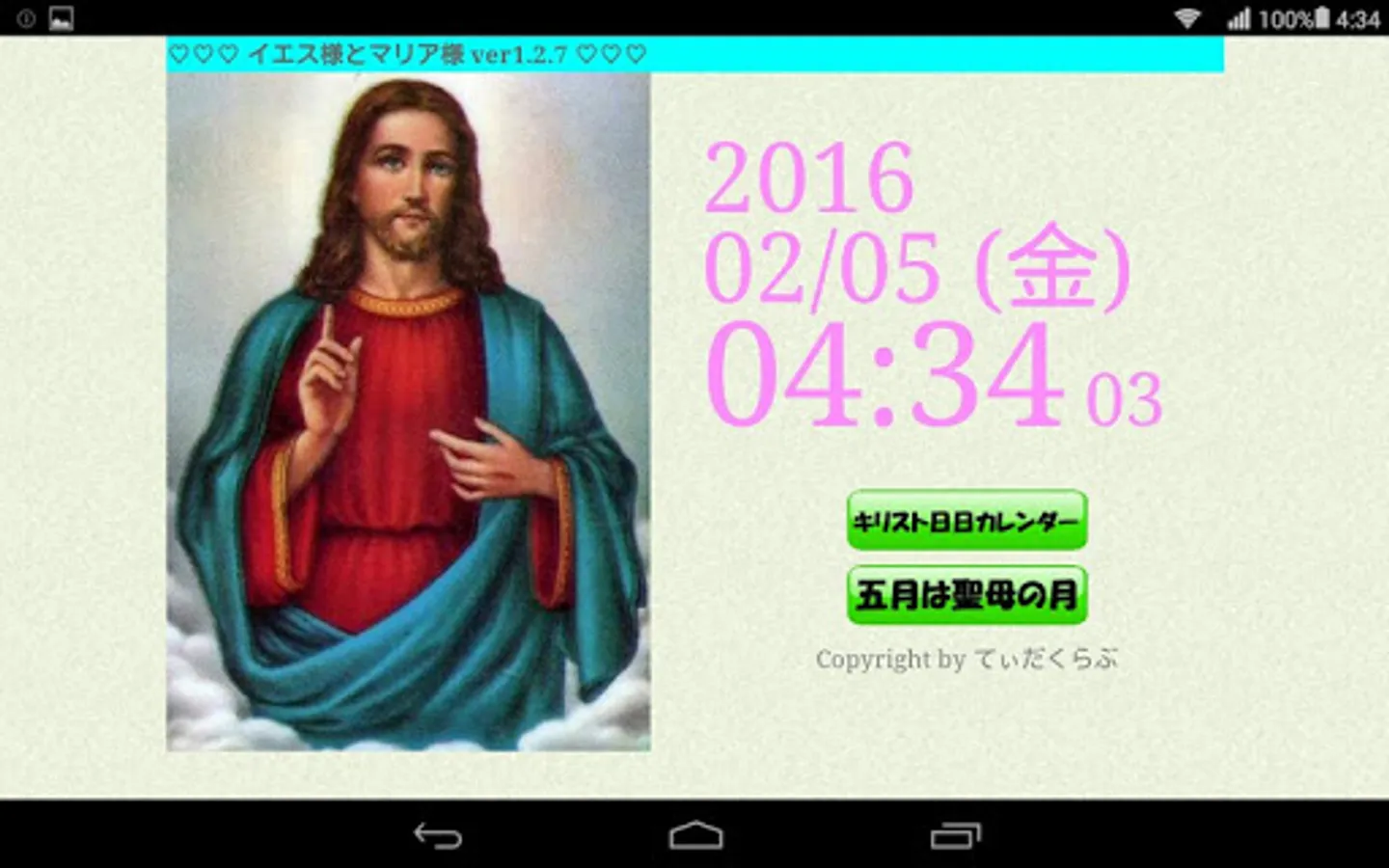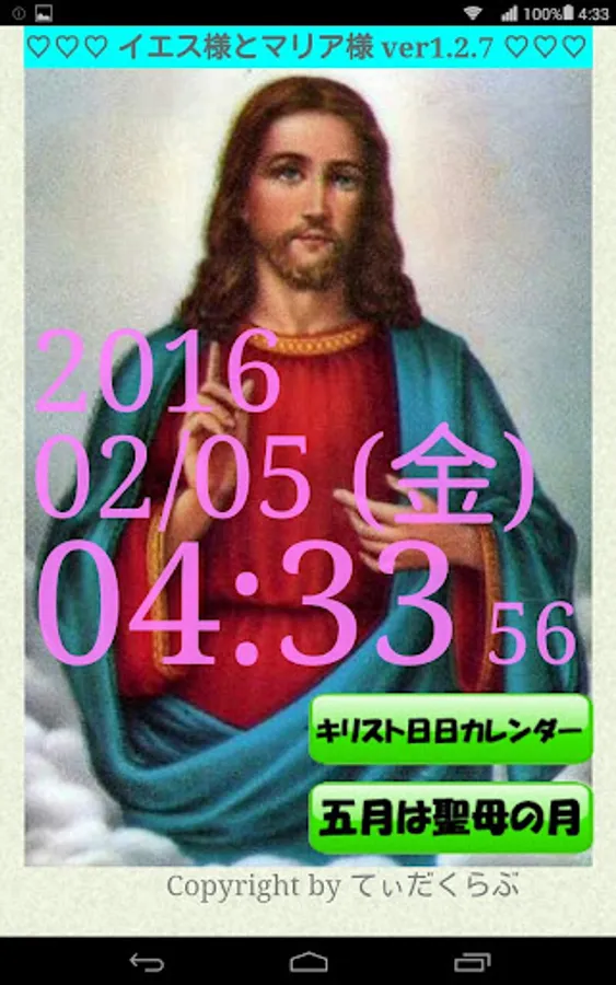 "Jesus and Mary", the app production studio Tida club to send, is a tear-off calendar calendar app.