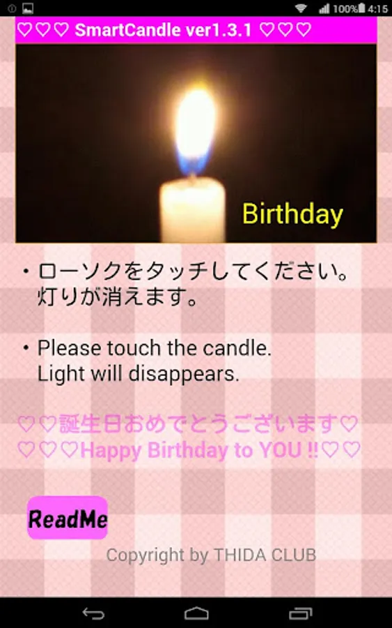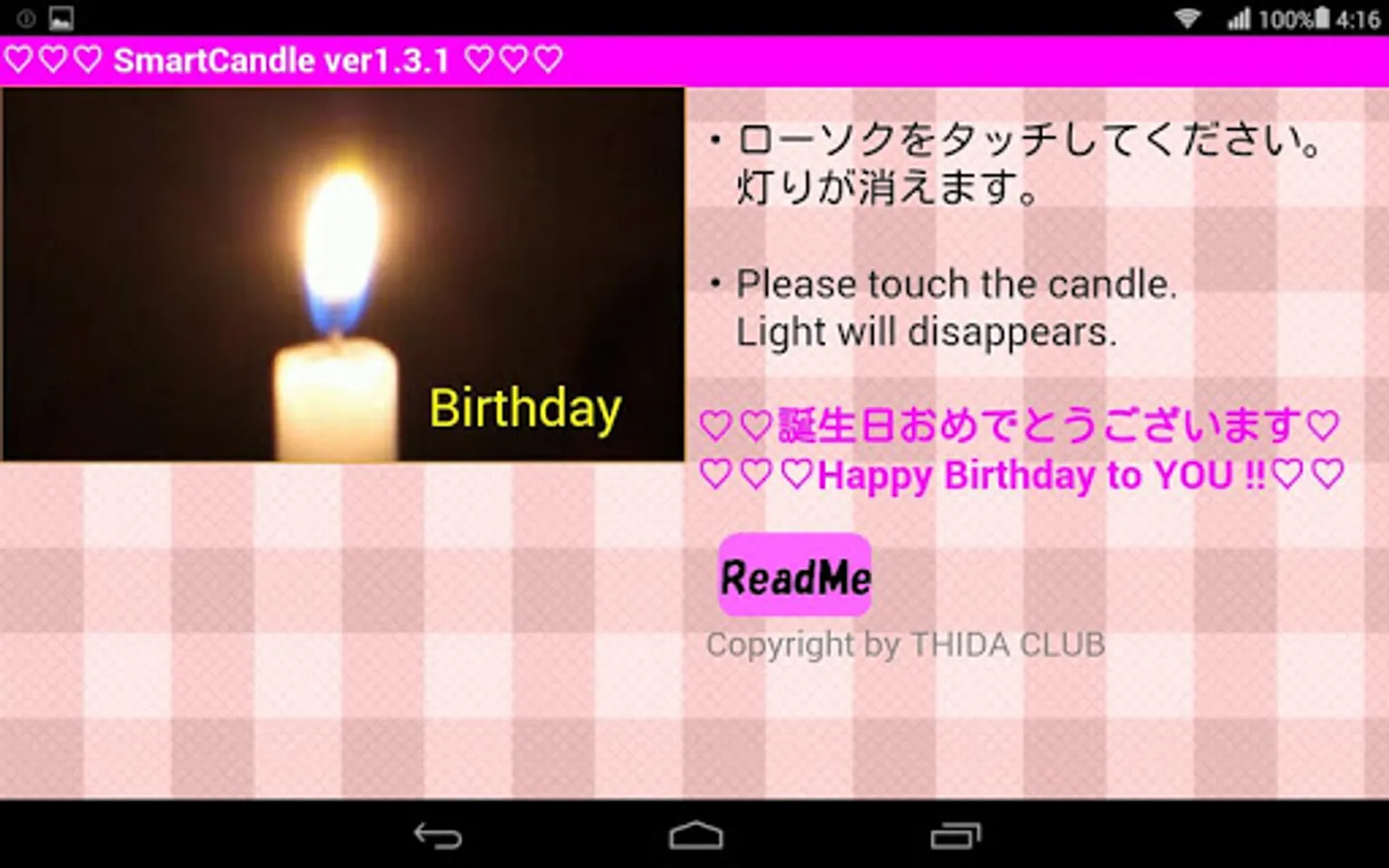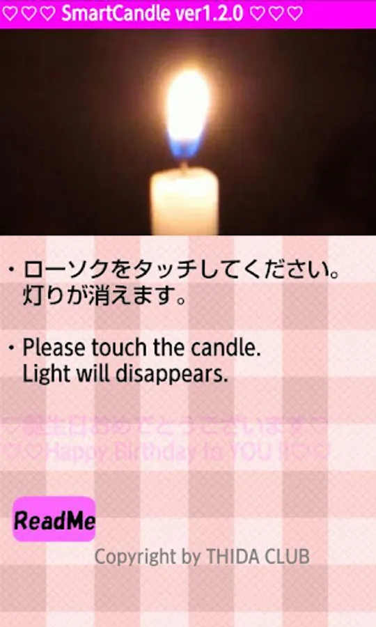 When you tap the candle of the image , along with the song Happy Birthday , candles , sticks light .