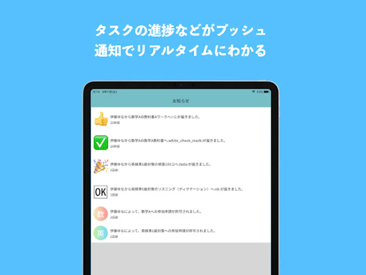 In addition, students can know the contents of their homework anytime, anywhere, and can instantly report the completion of their homework!