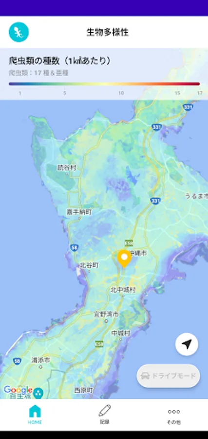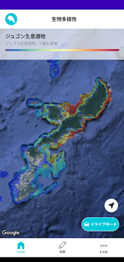 You can check the list of creatures that are likely to live in the surrounding area and their geographical distribution by tapping on the map of Okinawa Prefecture and nearby waters.
