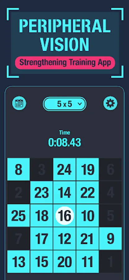 This app is a free peripheral vision training app that uses the most simple and effective "Schulte table" to improve peripheral vision.