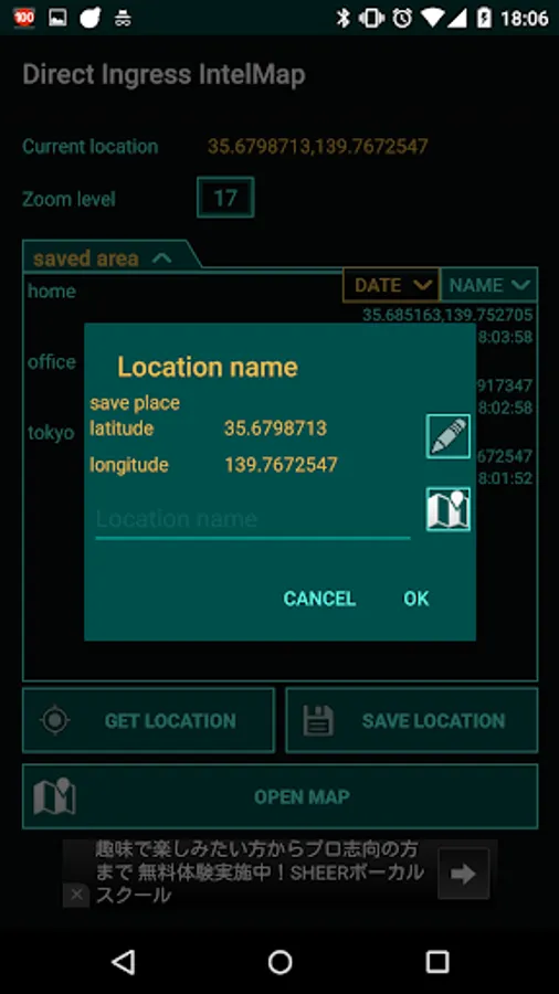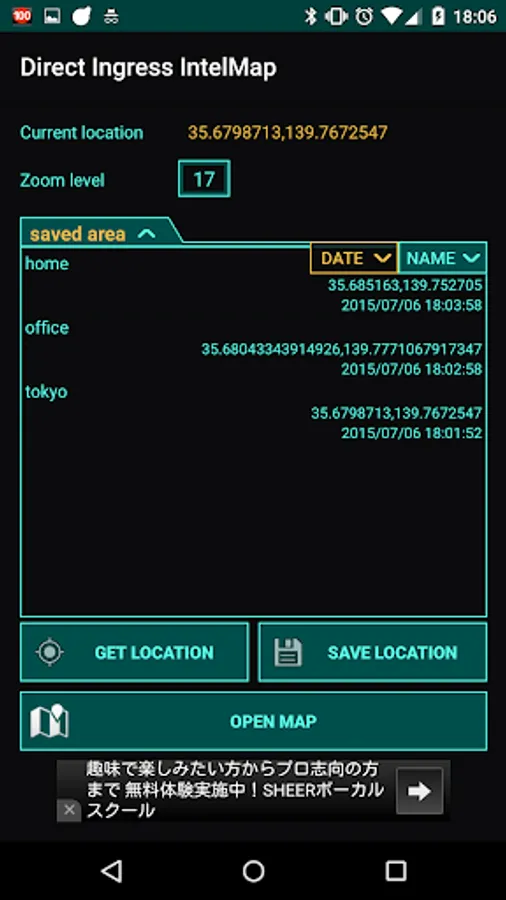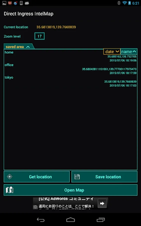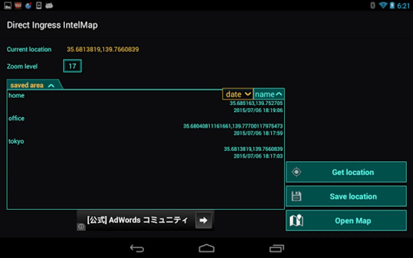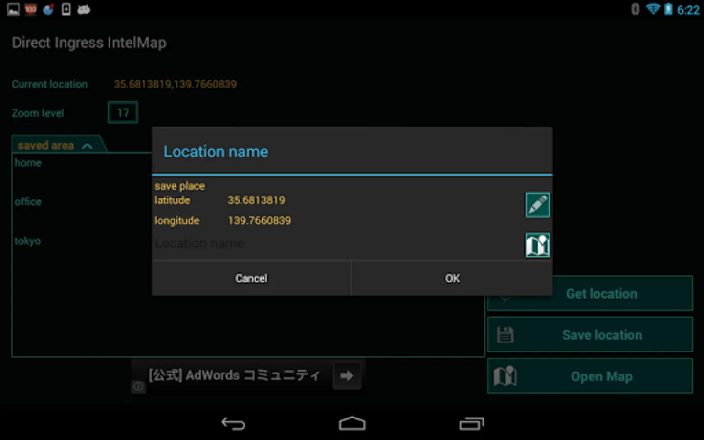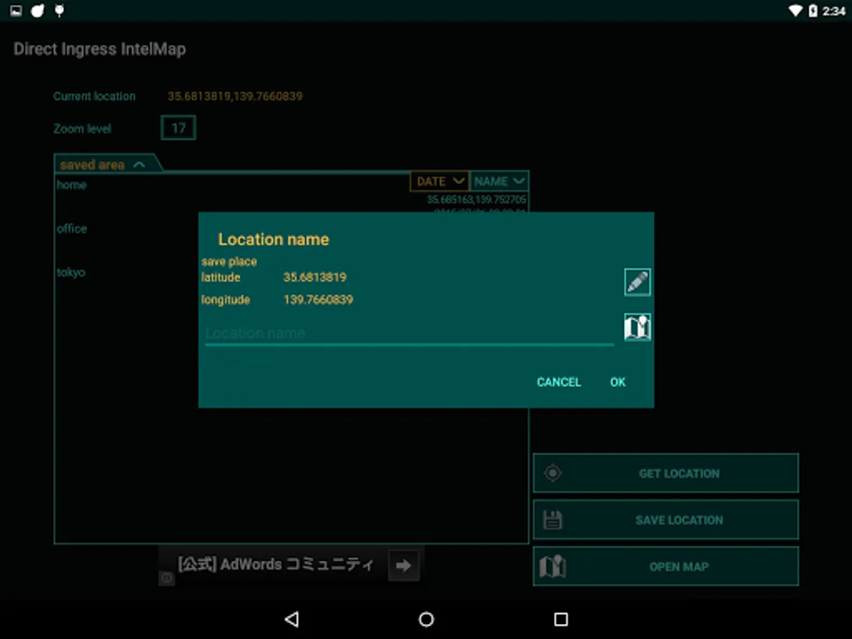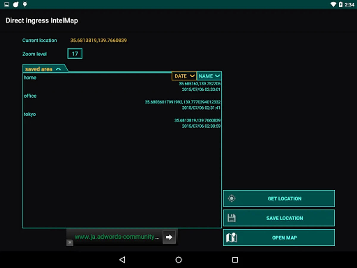 This app has acquired the current position at the time of start-up, the current location is displayed as the initial state by invoking the IntelMap from this app.
