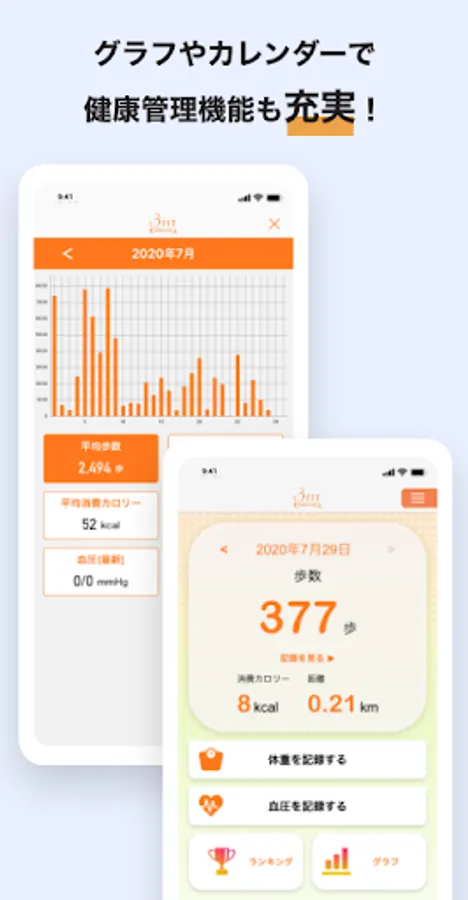 You can check the transition and ranking of the number of steps and calories burned each month.