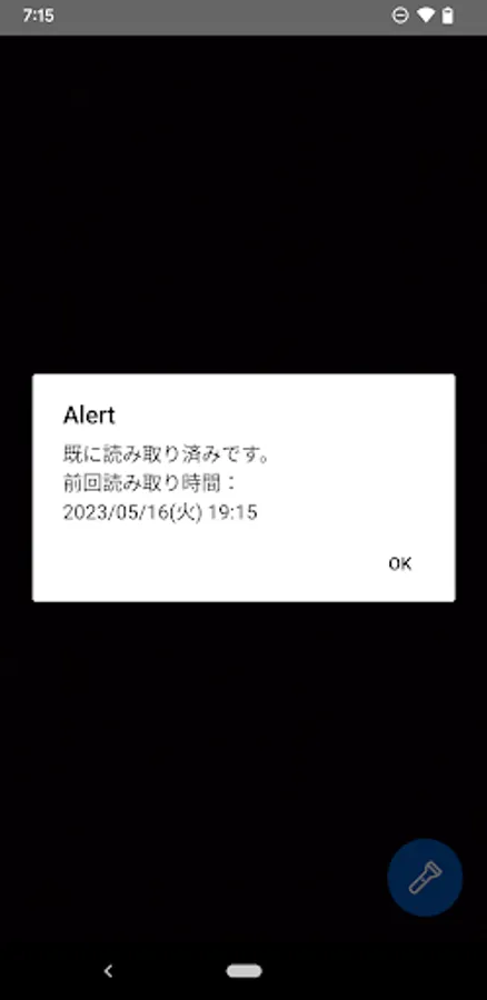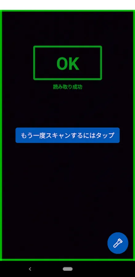 If it is a proper QR code, a "success" sign will appear when read with the in-app camera function. By touching the screen again, it is possible to continue reading the QR code afterwards.