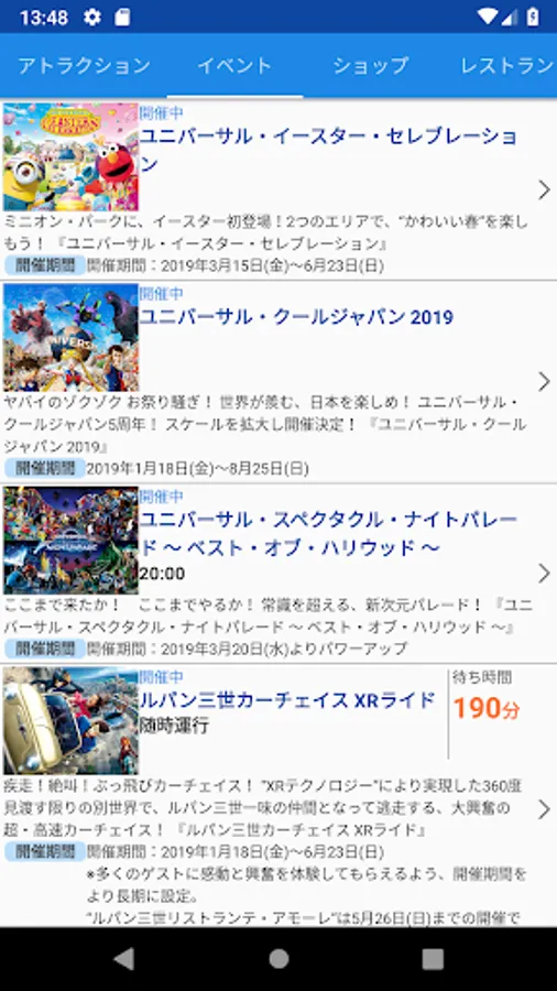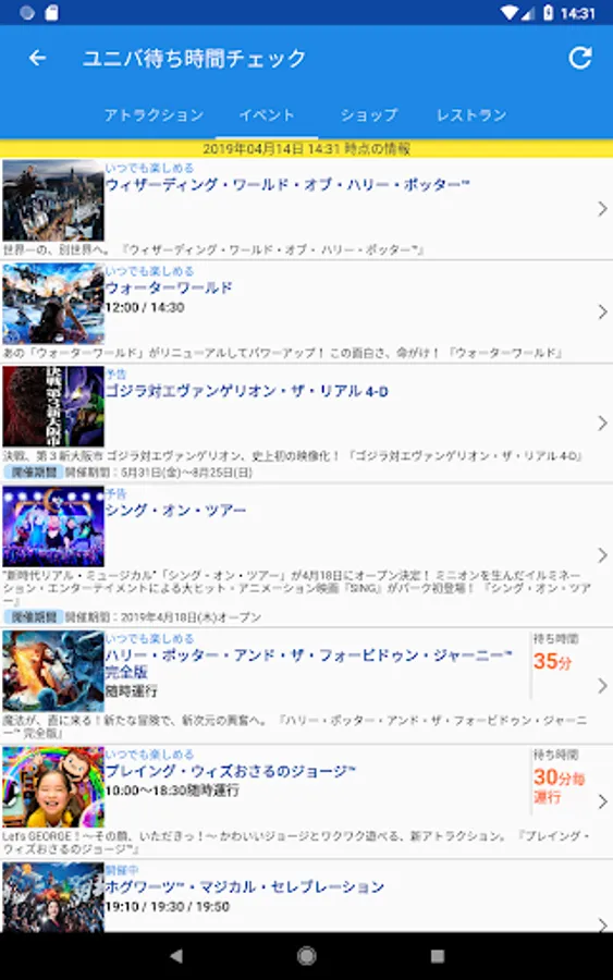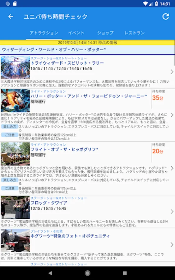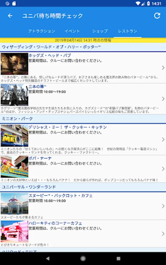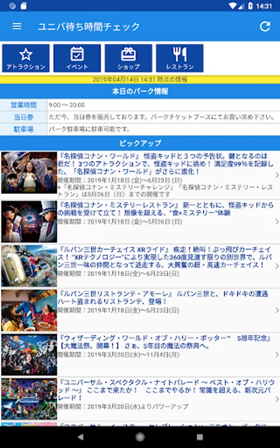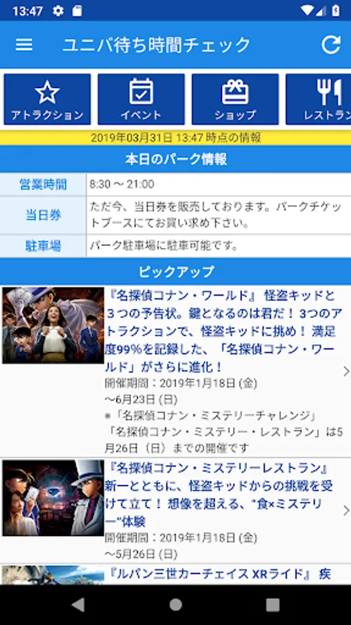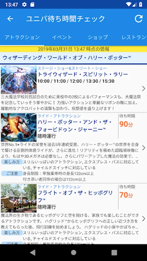 ・ Wait time and schedule are displayed only during the business hours of the park.