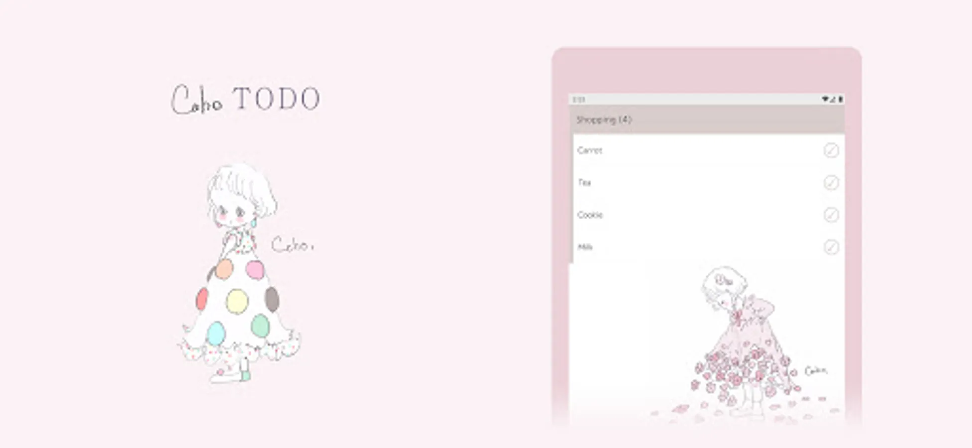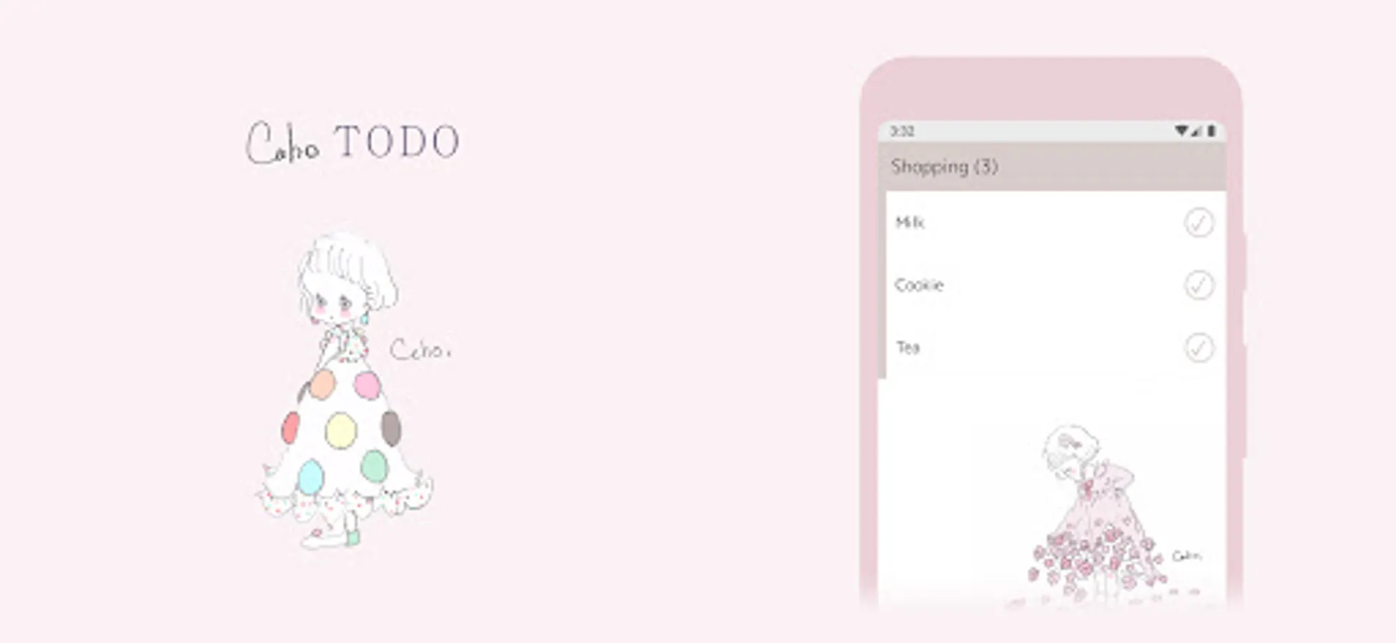A cute illustration of a girl's life-sized feelings of love. The TODO application by Caho, an illustrator whose popularity is rapidly rising, is now available!