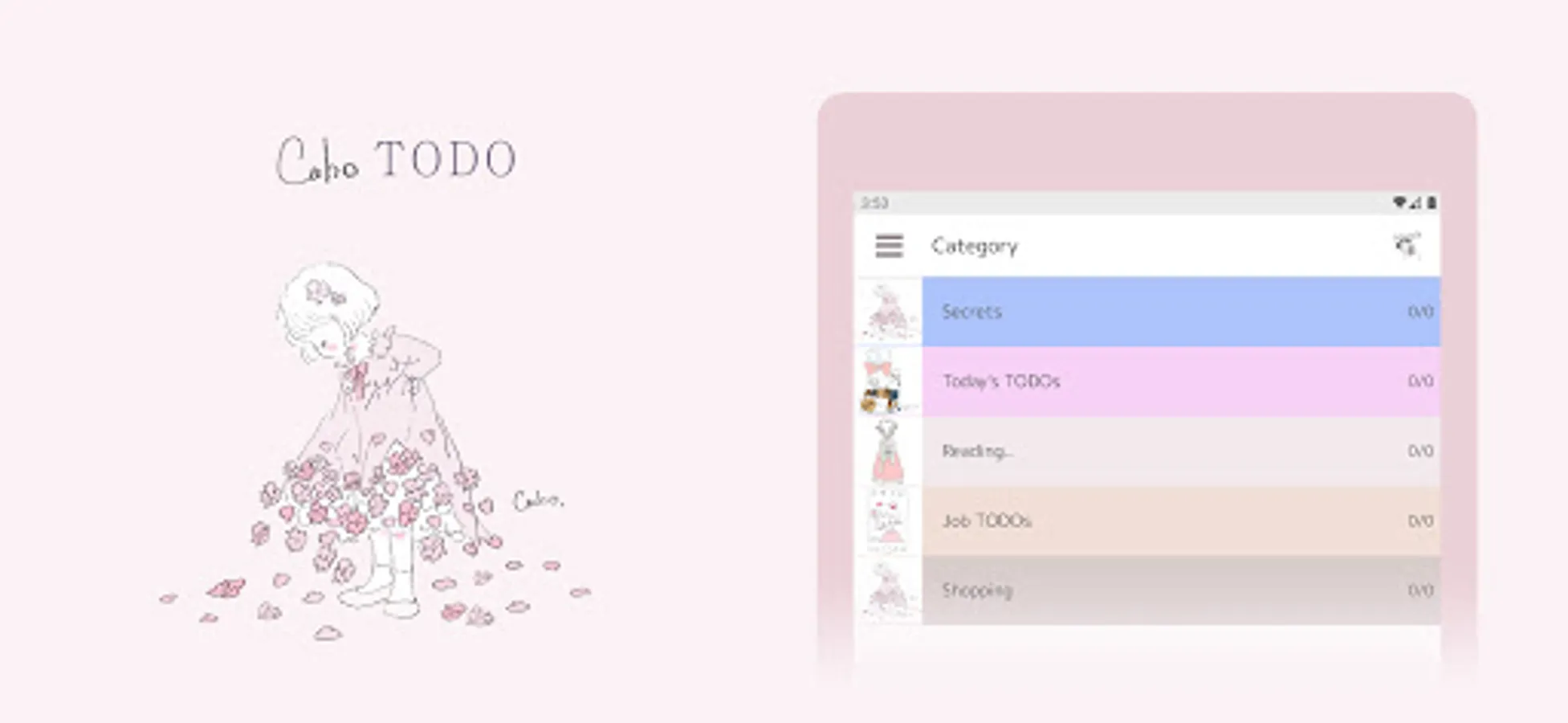 The colors are all Caho colors. The colors are all Caho colors, so you can say goodbye to those not-so-cute TODO apps.